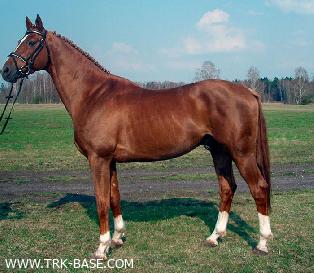 | Riders Conrad Homefeld, Debby Stivens. Individual silver & team gold in WEG Aachen-1986. I World Cup finale, Berlin-1985. Frozen sperm - in Nemuno stud, LIT. Licensed for Trakehner breed. 5 x Palmenbluete-Award (ATA). |