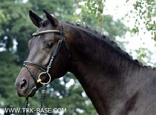 | Tested in Medingen-1989: character 9, temperament 8, walk/trot/gallop 8/8/8, jumps 8, movements 8, index of riding qualities 6,67, potential 7; dressage index >121, index of pedigree value >120. Licensed by DTV, DEU. Horse of the Year 2009. |