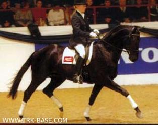 | | PEDIGREE |  | | Inbreeding: Nithard: IV:IV; Dadji: VI-VII:VI; Lotus VIII: VI-VII:VI; Ferro: VIII:VIII; Pythagoras: VII-VI-VII:VII; Dampfross: VIII-VIII-VII-VII-VIII:VIII-VIII-VIII; Pilger: VIII-VIII-VIII:VIII; Bussard: VII:VII; Traumgeist: V:V; |  | INT CL -SJ- Stradivari, TRK BR, 1989, FRA |