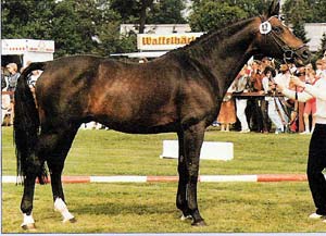 | | PEDIGREE |  | | Inbreeding: Tempelhüter: VII-VI-VIII-VII-VII:VI; Perfectionist: VIII-VI-VIII-VIII-VIII-VIII:VII-VII; Obelisk: VIII-VIII:VII-VIII; St. Simon: VIII:VII-VIII; Odoardo: VIII:VIII; Polarsturm: VII-VII-VIII-VIII-VIII:VII; Volapük (Volapuek): VIII:VIII; Salvator: VIII:VIII; Parsival: VII:V; Harzsage: VII:V; |  | Halali, TRK D-BR, 1960, GER |
