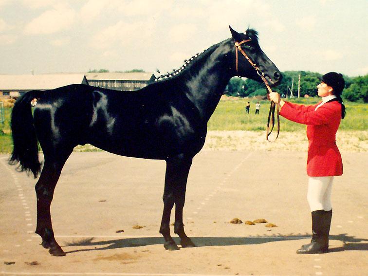 | | РОДОСЛОВНАЯ |  | | Инбридинг: Cornut: IV:VI; Ararad: V-VII:VII; Perfectionist: VII:VIII; Ard Patrick: VI:VIII; Pola: V:VIII; Kupferhammer: VIII:VII; Parsival: VIII:VIII; Hyperion: VIII-VII:VIII; Dampfross: VIII:VIII; Tempelhüter: VIII:VIII-VIII-VII-VIII-VIII; Thronhüter (Thronhueter): VIII:VII; Granit II: VI-VI:VII; Bay Ronald: VIII:VIII; |  | ES Razbor, UKRWB BL, 1972, UKR |