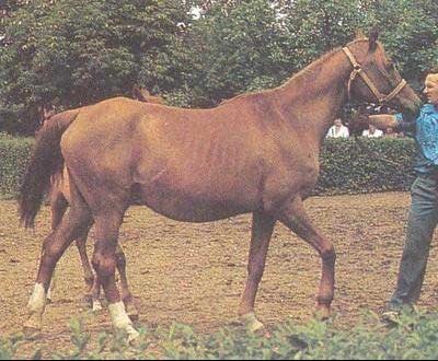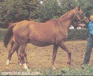 | | РОДОСЛОВНАЯ |  | | Инбридинг: Astraled: VI-VI:VI; Mesaoud: VII:VII-VII-VII-VI-VI; Aziz: VIII:VIII-VII; Ridaa (Fam. ox): VI:VI; Hadban: VIII:VIII-VIII-VIII-VI; |  | ES Aswan ex Raafat, OX GR, 1958, RUS |