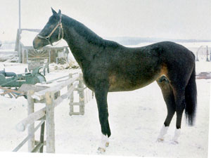 | | PEDIGREE |  | | Inbreeding: Dark Ronald: VIII-VIII-VII-VI-VII:VII; Kendal: VIII:VIII; Gallinule: VIII-VII-VIII:VII; Astor: VI-VIII-VIII:VI; Polarsturm: VIII-VIII-VIII:VIII; Ararad: VI-VII:VI; Perfectionist: VIII:VII-VIII-VIII-VII; Habakuk: VIII:VII; Termit: VI:IV; |  | INT CL -E- Dueljant III, RTRK D-BR, 1973, RUS |