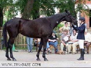 | | PEDIGREE |  | | Inbreeding: Ostrjak : IV-IV:V; Tempelhüter: VIII-VIII-VIII-VIII-VIII-VIII-VIII-VIII:VII-VIII; Pythagoras: VI-VIII-VI-VIII:V-VII; Dampfross: VII-VIII-VIII-VIII-VII-VII-VIII:VI-VIII-VIII-VIII; Sapadnja (RUS Fam. N118): IV:V; Tachta (RUS Fam N 267): V:V; Piligrim ex Alpenjäger (RUS N 33): VII:IV; |  | Hebit, RTRK CH, 1994, RUS |