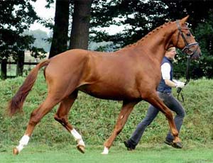 | | РОДОСЛОВНАЯ |  | | Инбридинг: Marke (DEU Fam.O115A): VII:VII-VII; Lothar: VI:VII; Schöner Abend (Schoener Abend): VI:VII; Poseidon: VIII-VIII:VIII; Abfahrt (RUS Fam.): VIII-VIII:VIII; Dankeschön III (Dankeschoen III) (DEU Fam.O224A): VIII:VIII; Burnus: VIII-VI:VII; Humboldt: VIII:VIII; Altan: VIII-VII-VIII-VIII-VIII:VII-V-VIII-VIII-VIII; Valentin: V:VI; Abglanz: VI-VII:VII; Hirtensang: VIII:VIII-VII; Tropenwald: VIII:VIII; Peraea (DEU Fam.T4C): VIII:VIII; Donau von Schimmelhof: VIII:VIII; Pindar: VIII:VIII; Pasteur (DEU N 0634): V:VI; Bürgermeister (Buergermeister): VI:VII-VII; Donauwind: VII:VI; Poet: VIII:VI; Maharani II: VI:VI; Impuls: VIII:VII-VI; Stern: VIII:VII-VIII; |  | CH K DEU 2004, ES Le Rouge, TRK CH, 2002, GER |
