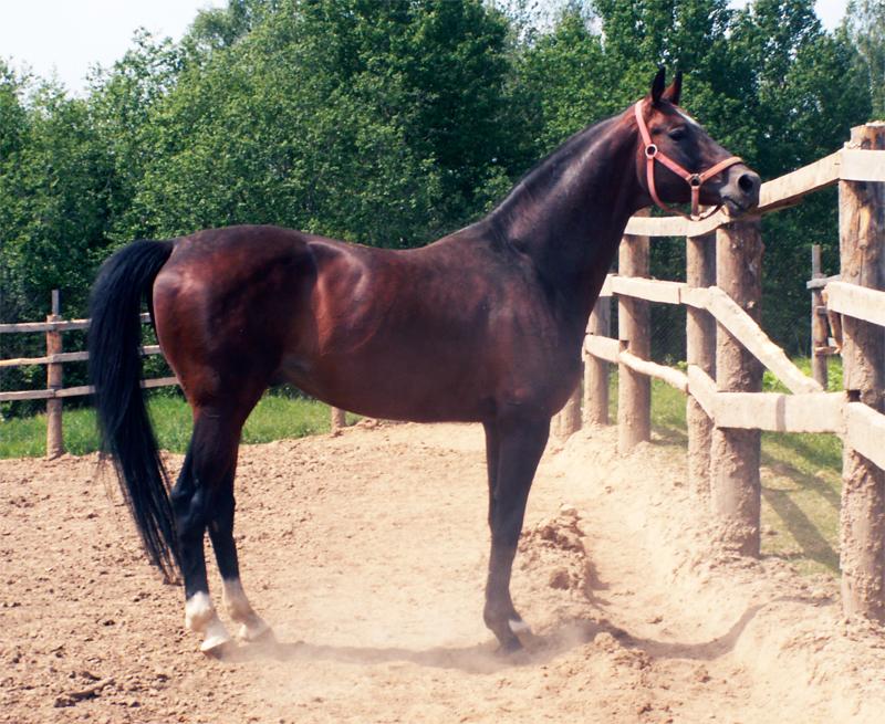 | | РОДОСЛОВНАЯ |  | | Инбридинг: Hrisolit: IV:VI; Kupferhammer: VII:VIII; Parsival: VIII-VII:VIII; Master Magpie: VIII:VIII; Dampfross: VIII-VIII-VII-VII-VII:VI-VII-VIII; Hyperion: VII:VI-VII; Pilger: VI-VI-VI:V-VI-VIII-VIII; Tempelhüter: VIII-VIII-VIII:VII-VIII-VII-VIII-VII-VII-VIII; Madam: VIII:VII; Ostrjak : IV:III; Pythagoras: VI:V-VII-VII-VII; Ararad: VII:VI-VIII-VIII-VIII-VIII; Sportwelt (RUS Fam): VII:VI-VIII; |  | Sorkij, RTRK BR, 1988, RUS |