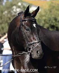 | | PEDIGREE |  | | Inbreeding: Pasteur (DEU N 0634): III:V; Herold: V-VII-VIII:VII; Hansakapitän (Hansakapitaen): VIII-VIII-VI:VI; Stern: VII:VI; Goldelse (DEU Fam.T14H): VIII:VI; Absalon: VII:VI; Poseidon: VIII-VIII:VII; Bussard: VII:VII-VII; Waldjunker: VIII:VIII-VIII-VIII; Pythagoras: VIII-VIII:VIII-VII; Ararad: VIII:VII-VIII-VII; Altan: VII:VII-VII; Flaneur: IV:VI; Famulus: VI:VIII-V-VI; Impuls: VII-VI:IV; Wilder Jäger (Wilder Jaeger): V:VI; Dampfross: VIII:VII-VIII; Appam: VIII:VIII; |  | ES Summertime, TRK D-BR, 1998, GER |