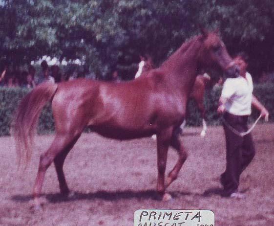 | | PEDIGREE |  | | Inbreeding: Taraszcza (RASB FAM в„– 218): IV:V; Abu Mlech: VI-VII:VII; Mlech I: VII-VI:VIII; Lania: VII-VII-VIII:VIII-VIII; Koheilan IV: VII-VII:VII-VIII; Gazella II: V-VII:VI; Kohejlan: VI-VIII:VII; Bakszysz: VII-VI-VI:VII; Piolun: IV:V; Rissalma (Fam. ox): IV:IV; |  | CH USA, CH CAN Muskat (Muscat), OX CH, 1971, USA |