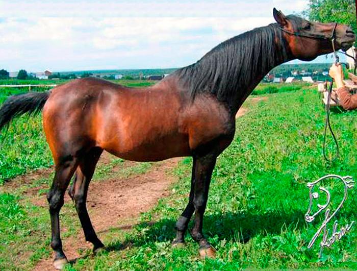 | | PEDIGREE |  | | Inbreeding: Priboj: III:IV; Koheilan I: V-VI-VII-VII:VII-VI; Dziewanna: V-VI:VI; Mesaoud: VIII-VIII-VIII-VII-VIII:VIII; Selima: VI-VI:VII; Rissla: V-VII:VI; Ridaa (Fam. ox): VII-VIII:VIII; Kohejlan: VII-VIII:VIII-VII-VIII-VII-VIII; Rasim: VIII:VII-VII-VII; Elegantka: VI-VII-VII:V-VII; Gazella II: VII-VII-VIII:VI-VI-VIII-VI; Hardy: VI:V; Elstera (Fam. ox): VII:VIII; Amurath (Amurath-Weil): VII:VIII; Wielki Szlem: VI:IV; Ofir: VII:V-V-V; |  | ES Slet, OX BR, 1973, RUS |