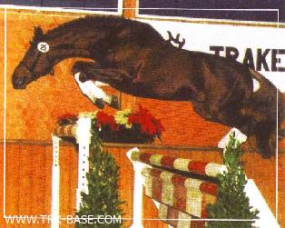 This chestnut stallion was discovered by international show jumping rider and horse dealer Juri Hanulay from Bratislava (Slovakia). He bought Abrek 17 in 1992 in Russia and brought him to his stable to ride in competitions. They were very successful up to 1.50 m courses and won the Grand Prix of Bratislava in 1992. Abrek 17 also had three first and three third places, as well as many other placements in competitions of "S" class. Then Abrek 17 was resold to Austria. His new owner and rider Barbara Beinwachs (Katzelsdorf) was likewise very prosperous with Abrek 17 in Grand Prix competitions between 1994 and 1998. "I have ridden many different horses, but my absolute favorite is still Abrek 17. He is very compact, clever like a Thoroughbred horse, but you can ride him like a German horse. Abrek 17 possesses high rideability, superb willingness for work and shows constant performance every time, but besides all these Abrek 17 always remains clear in his head", says Barbara. Abrek 17 alternated from sport to breeding in 1999, after impressive achievements on show jumping arenas. In 1995 Hans-Ernst Wezel (Gestuet Schralling, Burgkirchen, Germany), who is famous as the breeder of internationally successful dressage horse and Olympic team bronze medal winner in Atlanta 1996 Trakehner stallion Peron (Mahagoni - Peru II x Cocktail), ridden by Michelle Gibson/USA, saw Abrek 17 in Austria and recommended Barbara to present him at Trakehner stallion approval. Mr. Wezel together with Karl Wilhelm wrote the Studbook of Kirov horse stud. That is why he was quiet well informed about the bloodlines of Russian Trakehner horses and recognized the top quality pedigree of Abrek 17. It was rather difficult to get Abrek 17 approved in Germany, because the old-established German breeders were not happy about the successful Russian Trakehner horses generally and the enormous jumping qualities of Abrek in particular. Finally he was approved for Trakehner and Austrian Warmblood breeds.